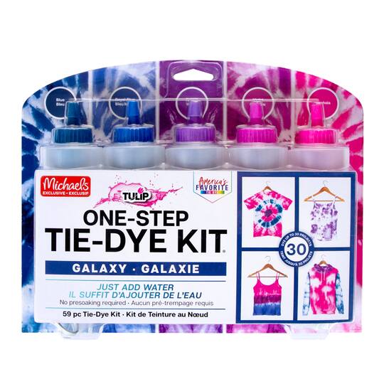 Extra Large Tie-Dye Kits. 1Purchase the Tulip One-Step Tie-Dye Kit at Michaels. This galaxy-inspired tie dye kit is perfect for creating vibrant apparel for friends and family.